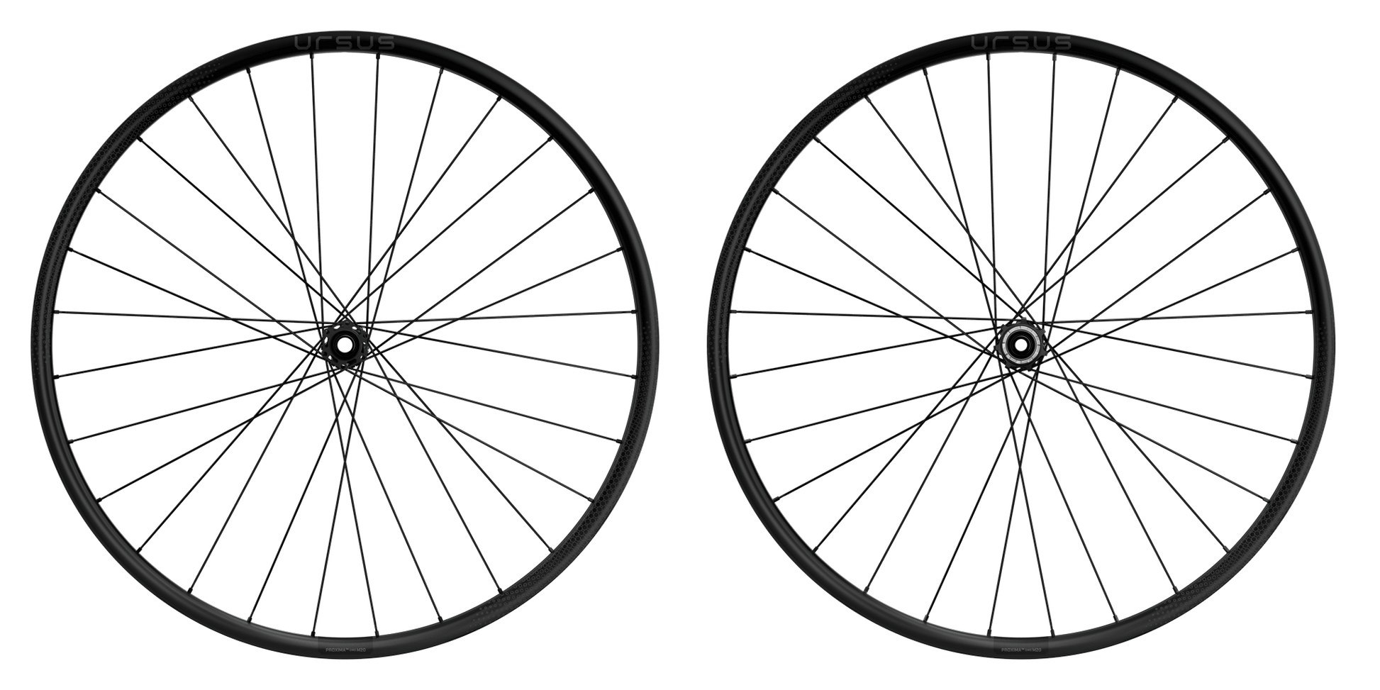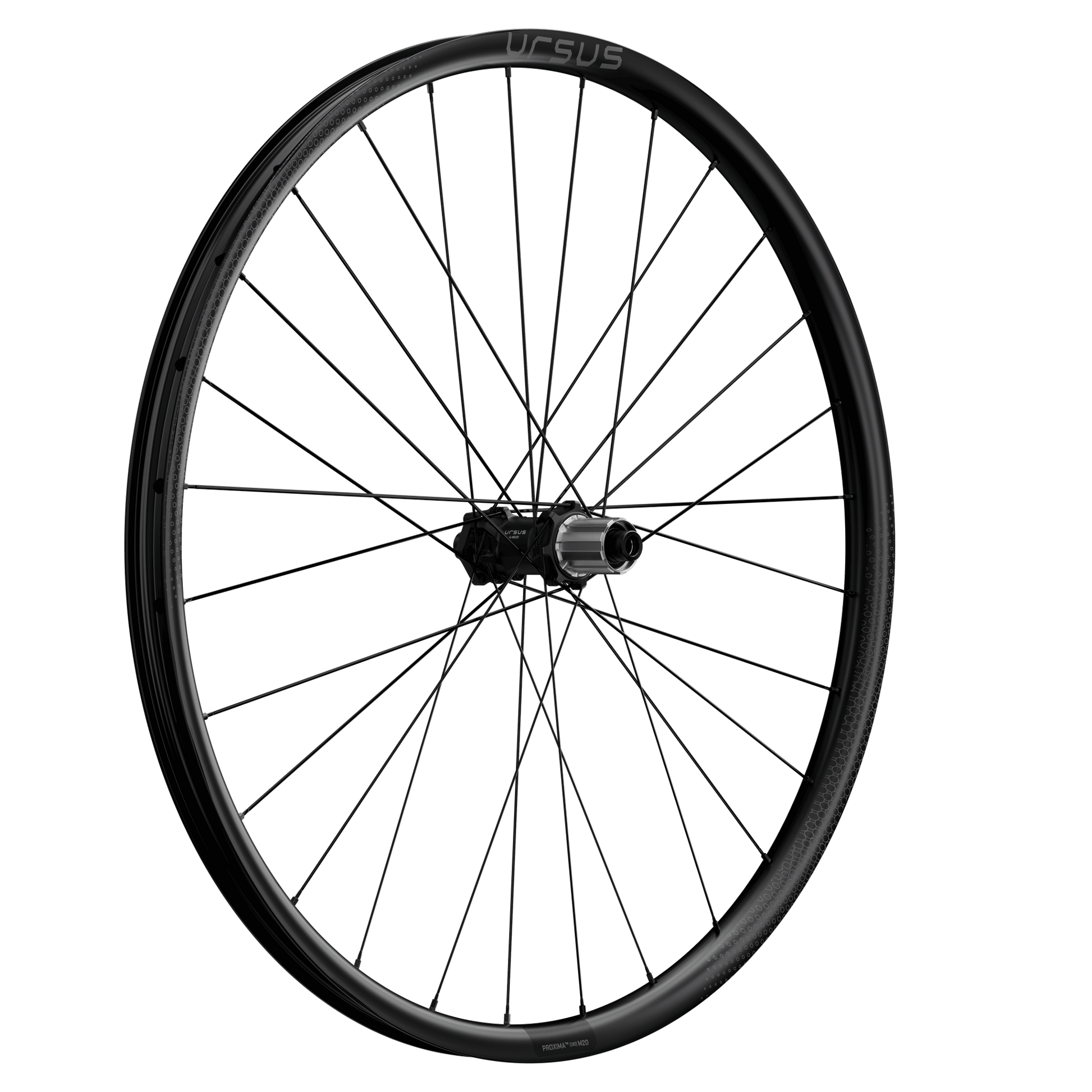 The Proxima M uses superlight hookless rims with aluminum nipples to simplify maintenance and reduce weight. It maintains balanced stiffness thanks to high-tension spokes, ensuring efficient load distribution and responsive acceleration. XC hubs with oversized flanges, designed to manage braking forces, are paired with three-cross straight-pull spokes: a plus in strength and reliability for competition wheels.
