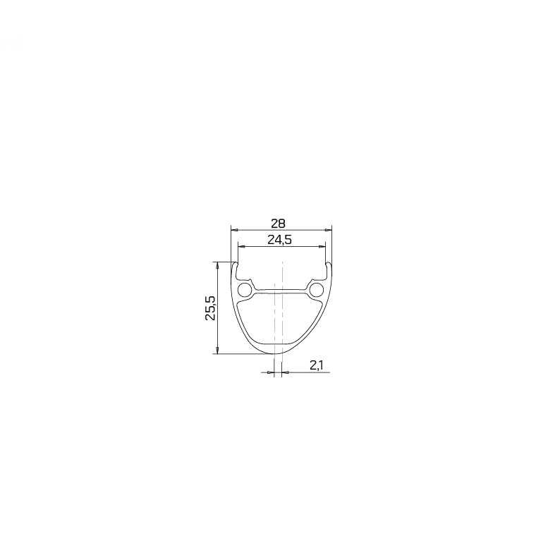Il profilo del cerchio presenta una larghezza esterna di 28 mm e un canale interno da 25 mm, progettati per per aumentare il volume d'aria nel pneumatico e migliorare comfort, stabilità e controllo. La geometria della sezione favorisce pressioni più basse, ottimizzando la trazione ed efficienza di rotolamento su fondi variabili.